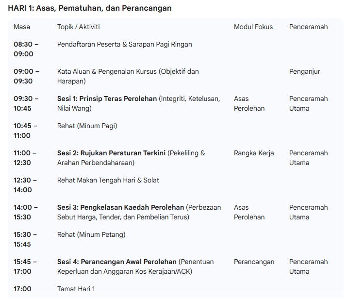 Kursus Pemantapan Perolehan (Intensive Procurement Strengthening Course)